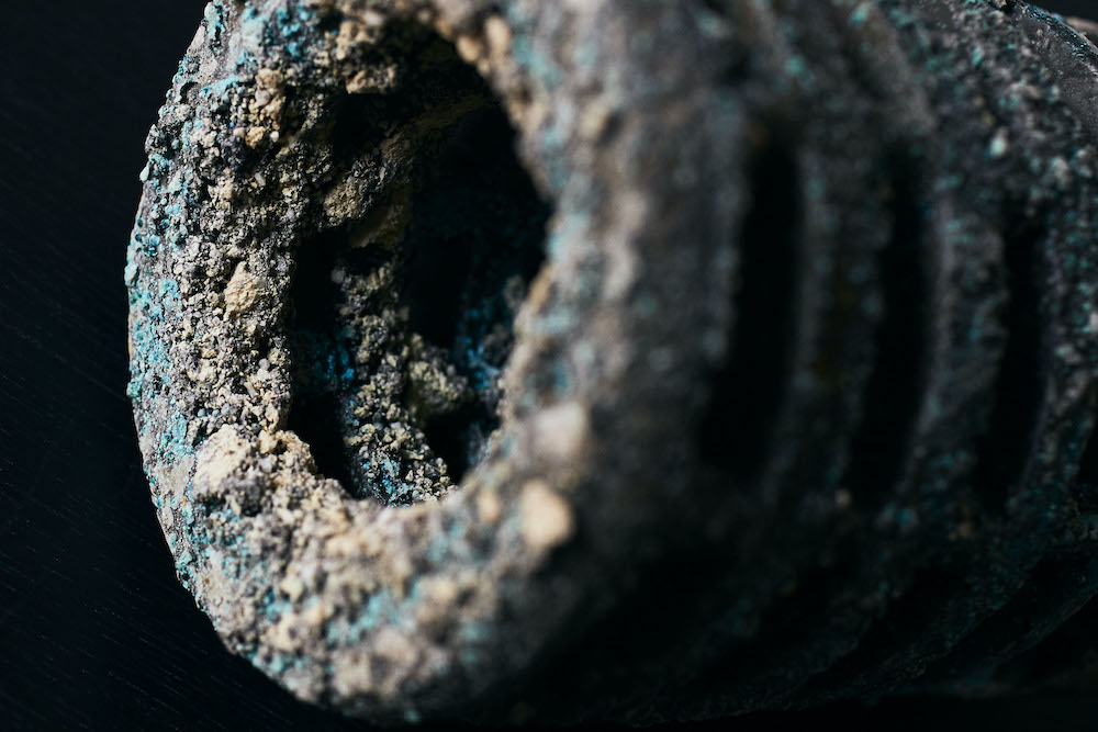 この世界の誰かの人の手に渡り、この後どう育ち、変化していくのか、作り手も我々もまだ誰も知らないその美に思いをはせる、 蒼く、鈍く、光る、灯る命のような錆の美に、身を委ねてみようと思います。
