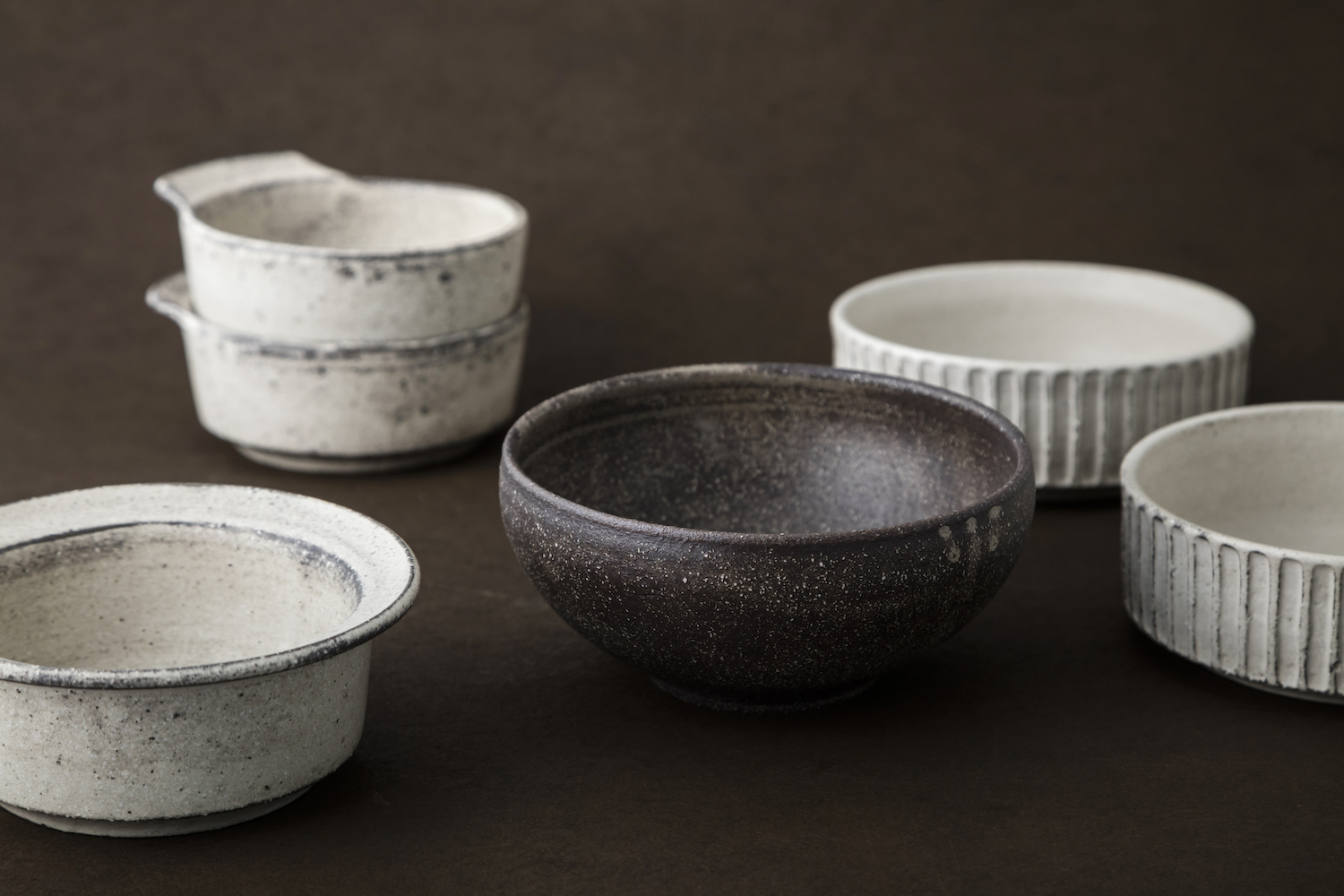 小谷田さんの確かな轆轤から生まれる、かたちも蓋の形状も異なる鍋は、使い心地に優れる信頼できる道具です。使うたびにその良さを実感し、頼もしく、時を重ねられます。数ある出展の鍋から、白と黒の二種類の色を選べる特別な展示となります。