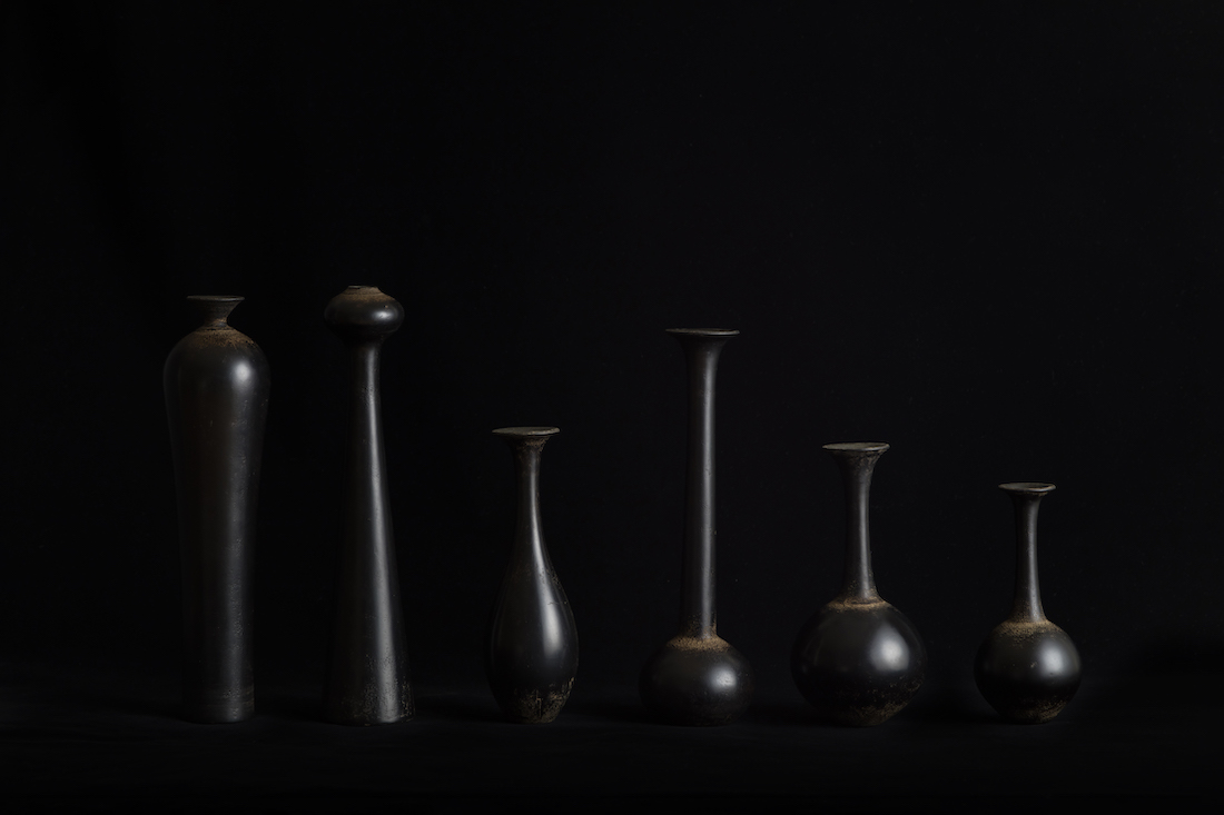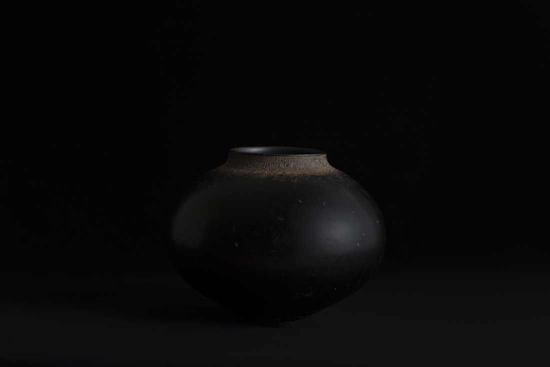 安齊賢太のうつわは、黒化粧の上に、漆を混ぜた陶土を繰り返し塗り、磨くことで、落ち着きのある艶を表現。その奥深い色彩のなかには、自然の時の流れや万物が流転する気配を感じとることができます。