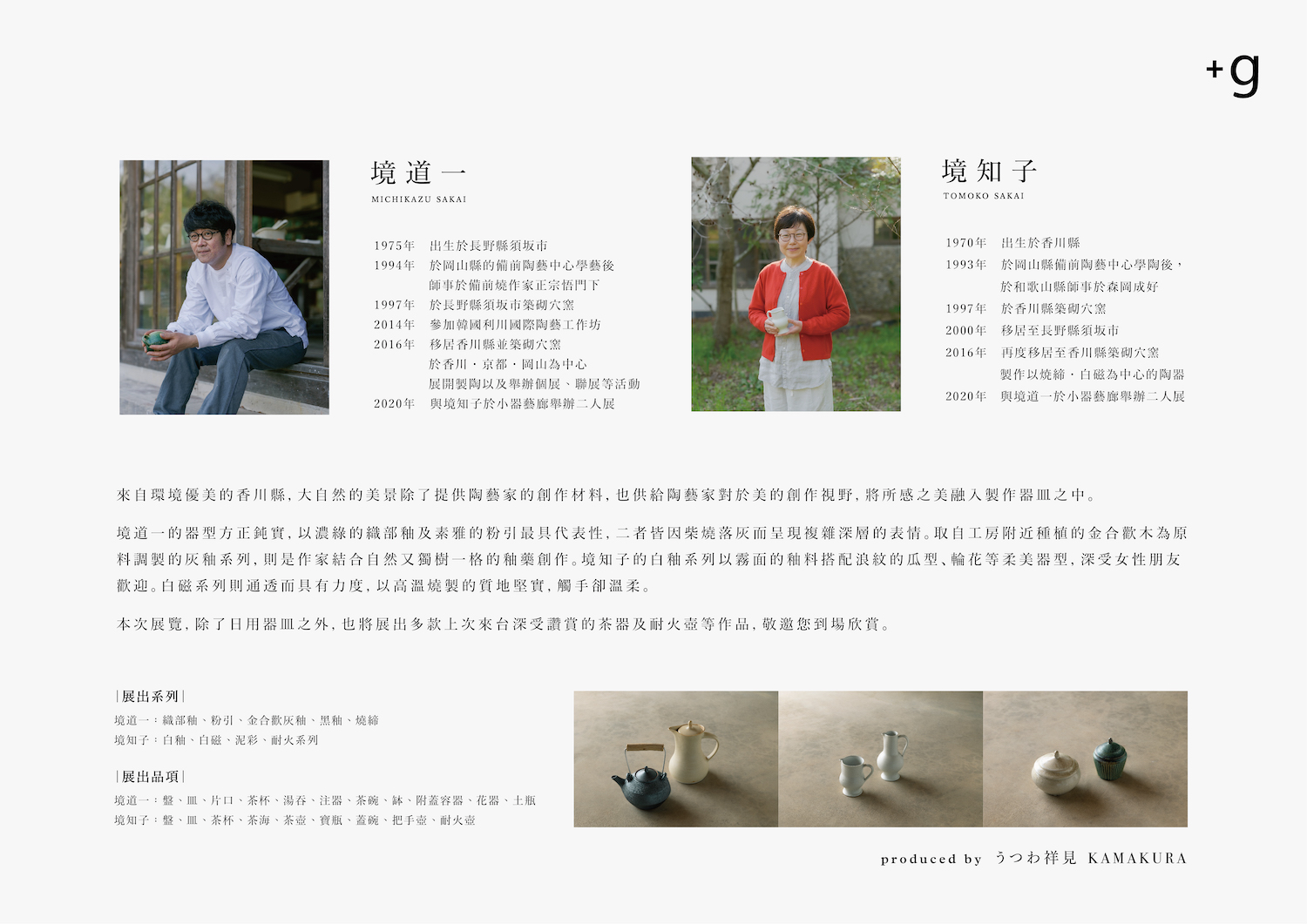 台湾・台北にある小器藝廊+g にて、境道一·境知子 二人展が開催されます