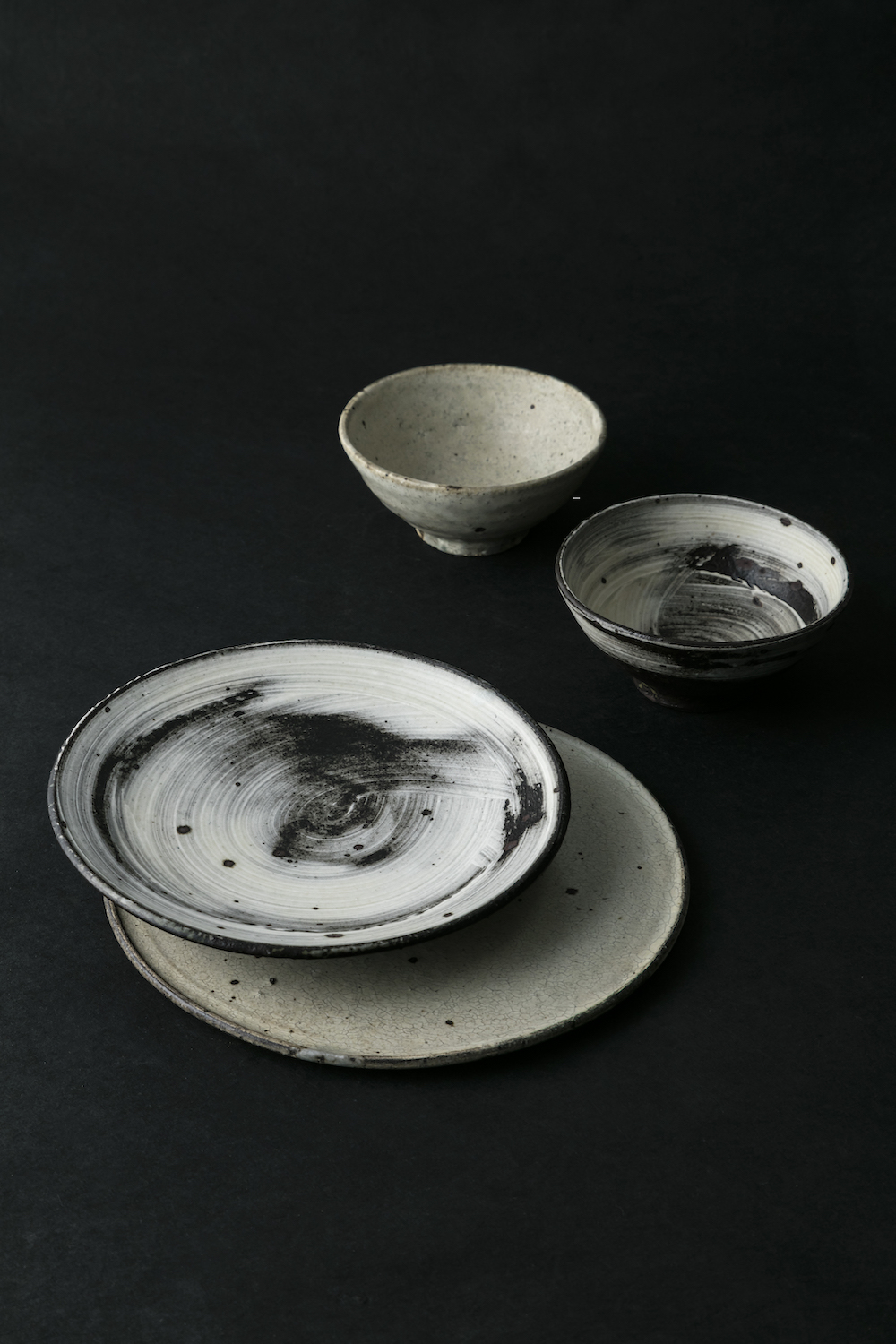 山田さんは多くの現代作家に影響を与えた故・青木亮氏が残した工房を受け継ぎ、粉引や刷毛目、黒釉、灰釉など、枠にとらわれない多様な表現でうつわを制作されています。