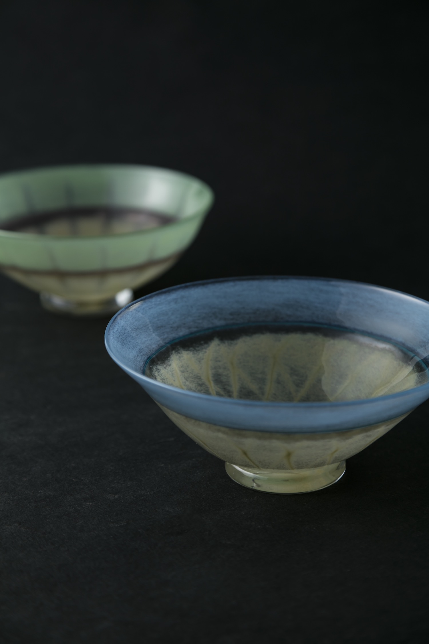 本展のために制作された新作の色ガラス作品とともに、定番のうつわを多数ご覧いただけます。