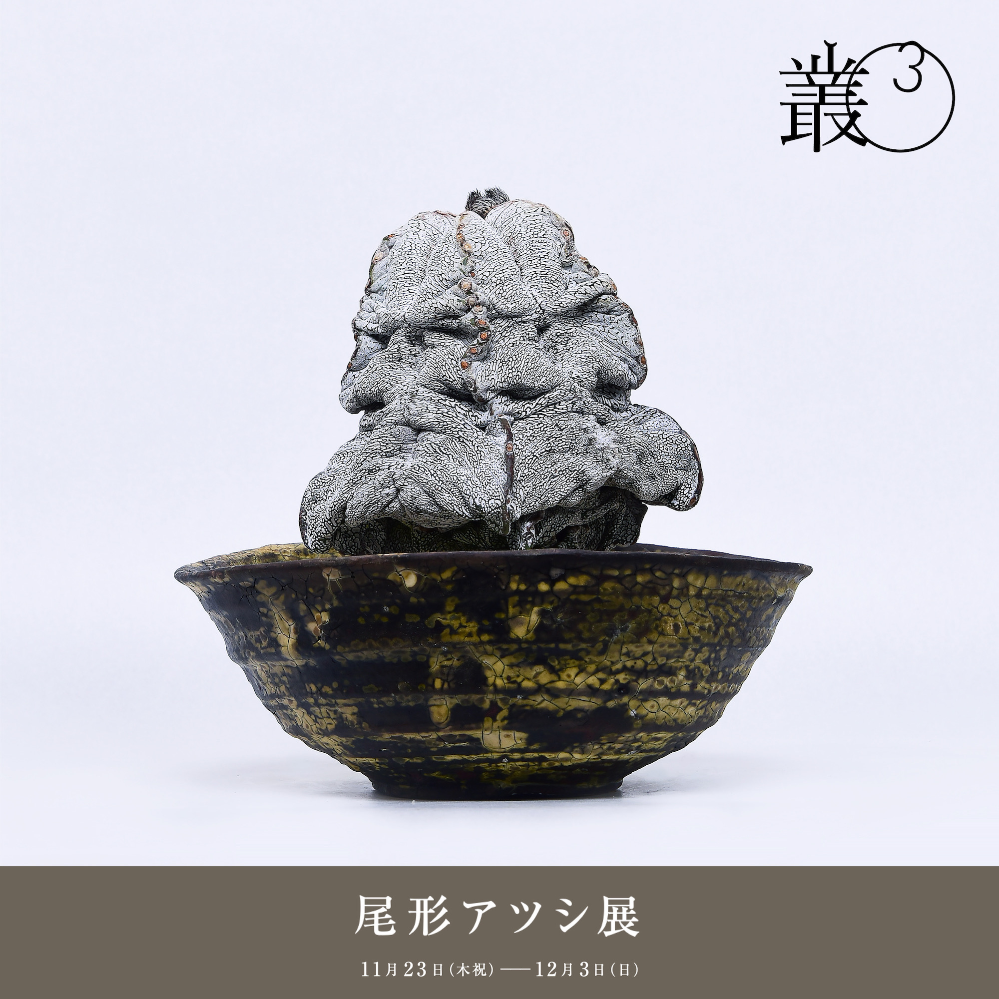 本展では、奈良の陶芸家 尾形 アツシさんの表情豊かな器に、叢の個性的な植物を合わせ、一点ものの鉢植えとしてご紹介します。