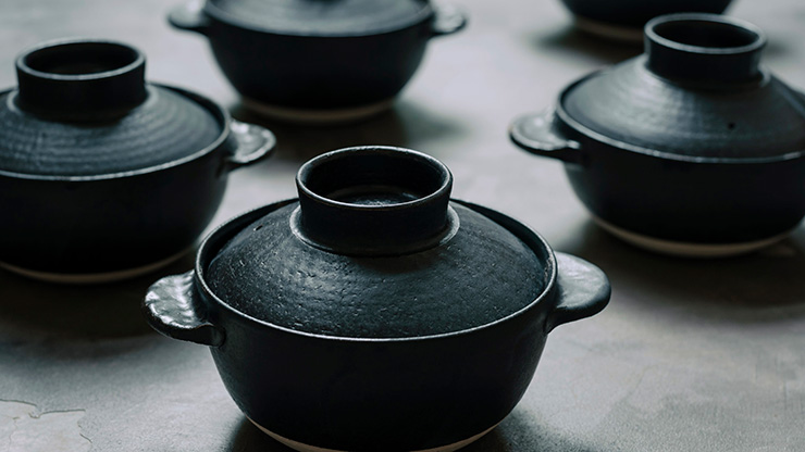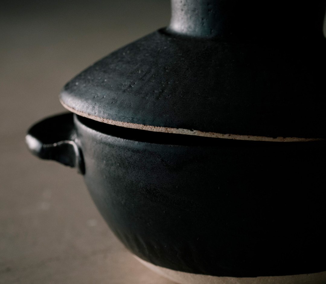 さて、そんな吉田さんがご自分のために作られたうつわが、今回ご紹介する耐熱シリーズ。ずっと以前に自宅で使うために耐熱の土で、直接火にかけられるうつわを作っているとお聞きしたことがあり、彼が作る耐熱のうつわに興味を抱いていました。そもそも、陶芸を始めたきっかけも自分の感性に合ううつわがないことに気づいたからということなのですから、今回の耐熱シリーズの誕生の秘話も理解できるのです。使う人に媚びることなく掘り下げていく作陶の姿勢を今回もしっかりお伝えできるのではないかと思います。ほかでは手に入らない「吉田直嗣の土鍋」。この度、”はたらく器、おいしい皿。2024”の第一弾としてご紹介できることは大きな喜びです。