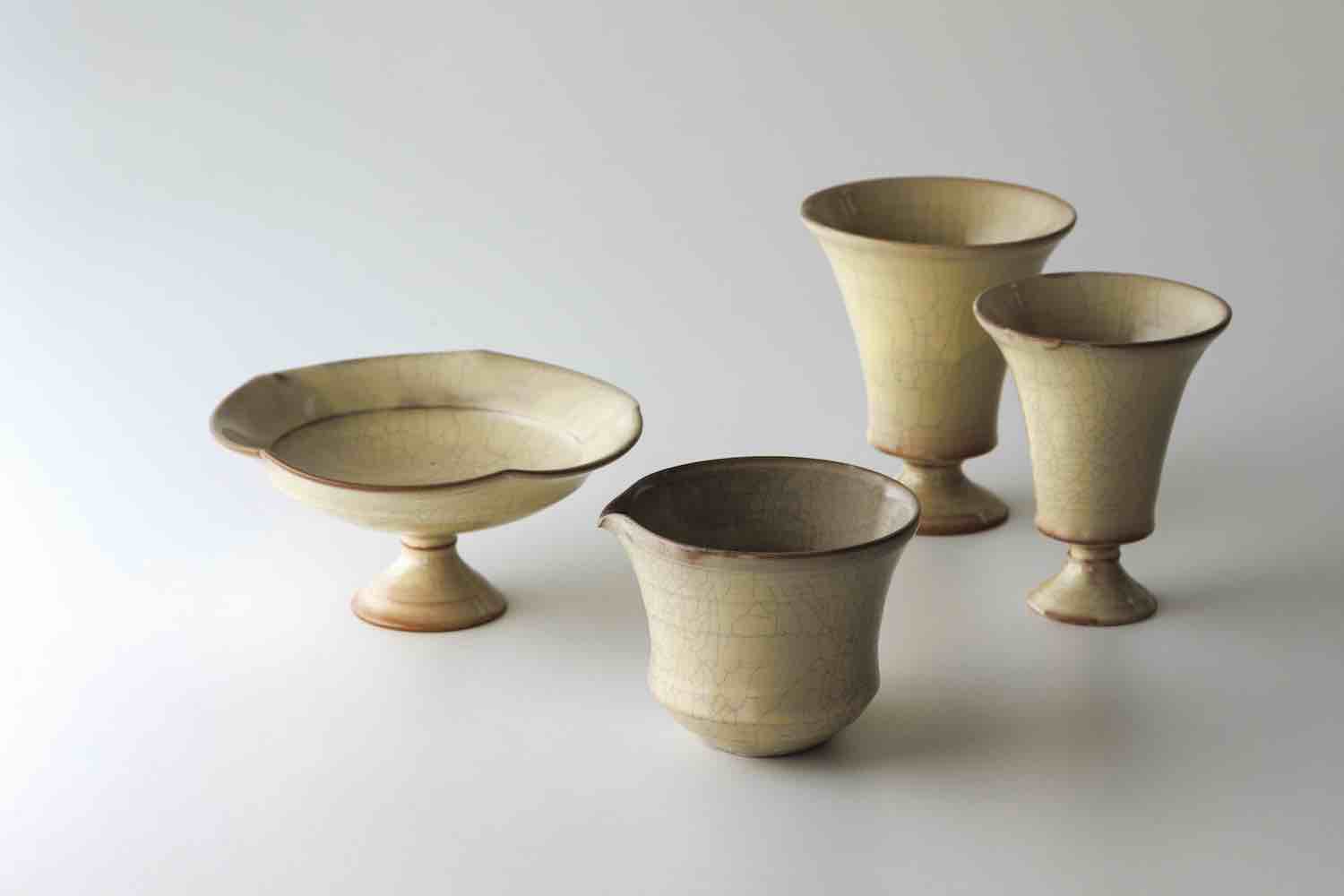 粉引、ひび粉引、黒釉など、確かな轆轤に裏付けされたうつわの情緒と気品ある美しさ、